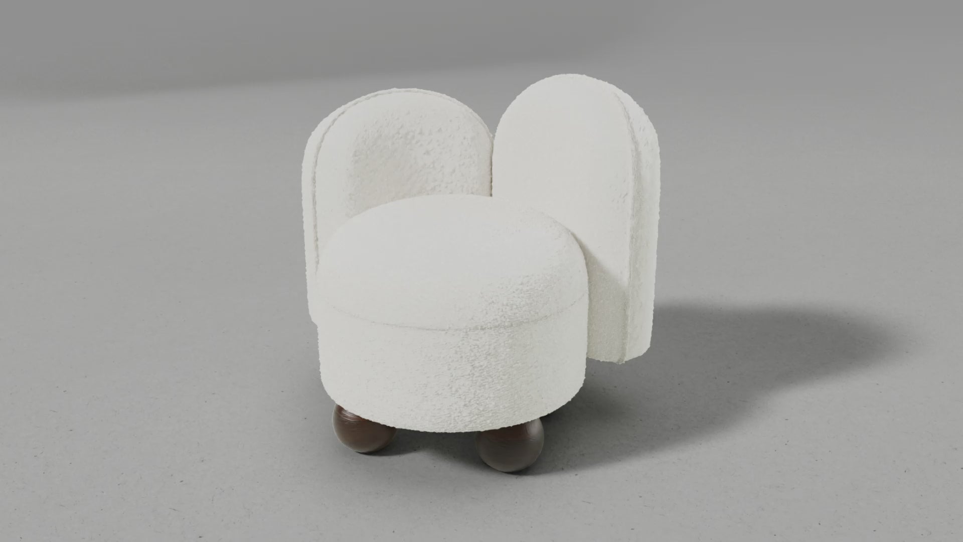 The Poppy Chair is a delightful blend of modern design and cozy comfort. Upholstered in luxurious boucle fabric, its rounded form and plush seat provide an inviting space to relax, while the sculptural wooden ball legs add a playful yet sophisticated touch.