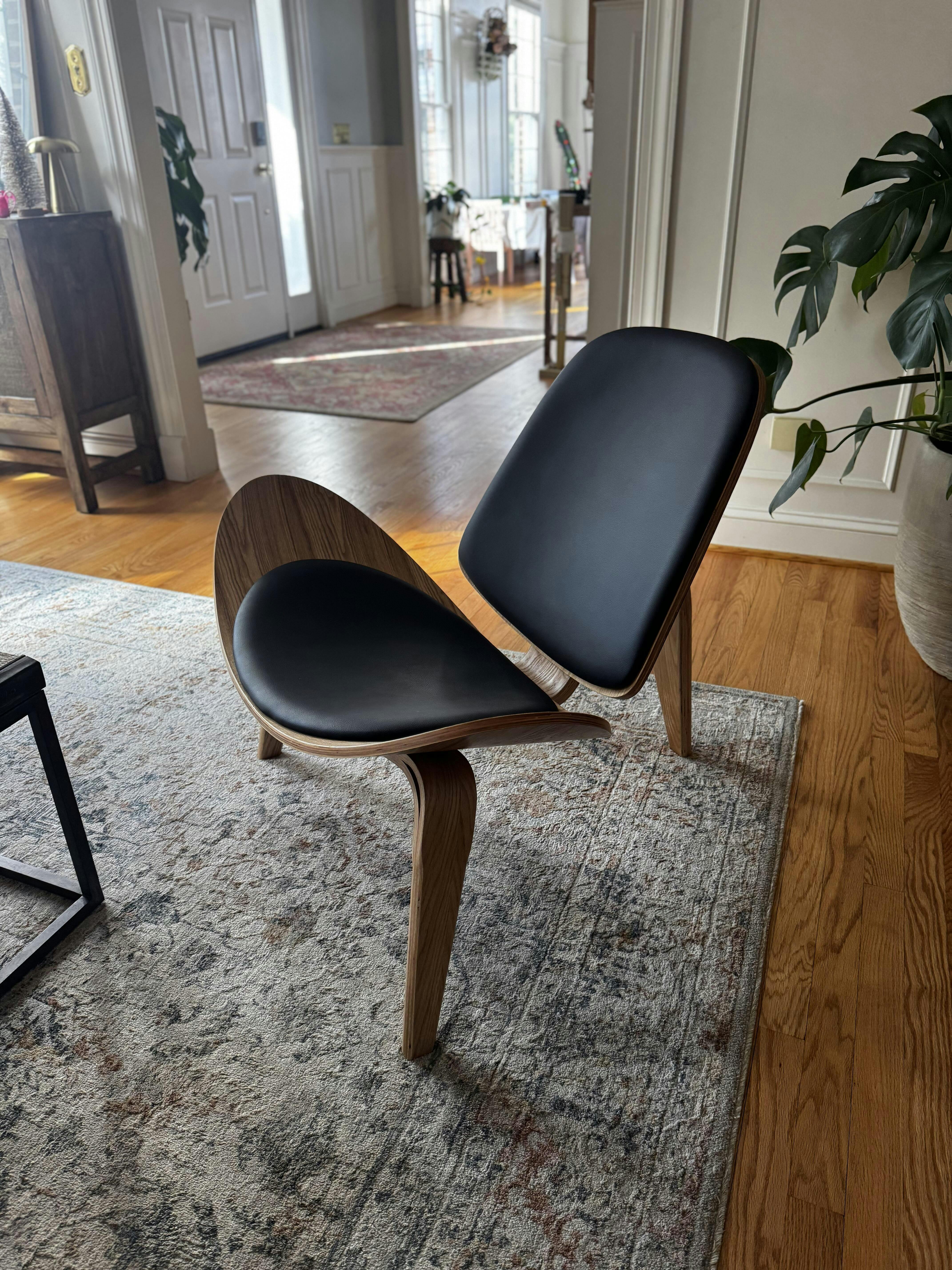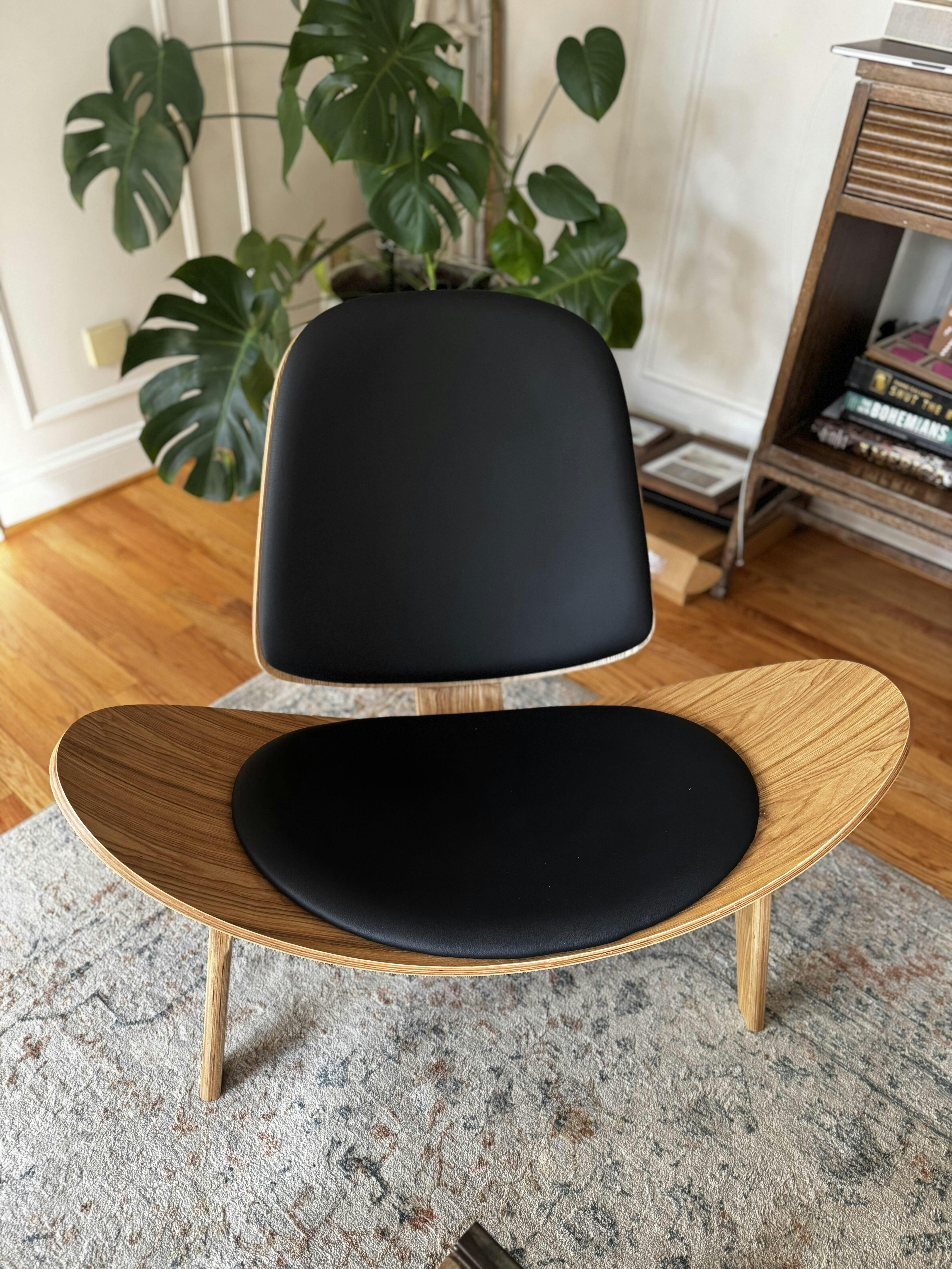 The Shell Chair is made of molded walnut plywood and comes upholstered in high-grade leather or stain-resistant fabric. The iconic design is versatile and suitable for modern homes, with the added comfort of waterproof Aniline leather and a reclined angle for a truly relaxing experience.